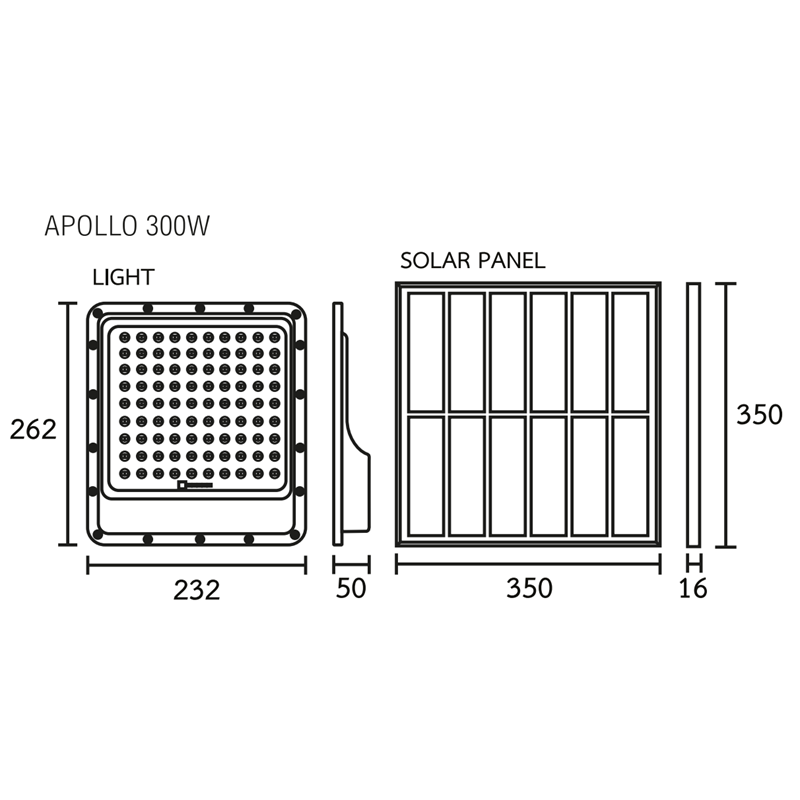 : โคมไฟฟลัดไลท์ LED โซลาร์เซลล์ โดยใช้พลังงานแสงอาทิตย์ APOLLO-300W สต็อก 0